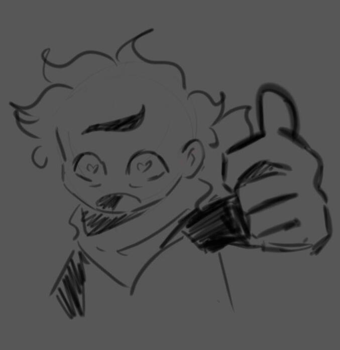 (Grey background, sketched lineart, some shading, no colour, short delivery)